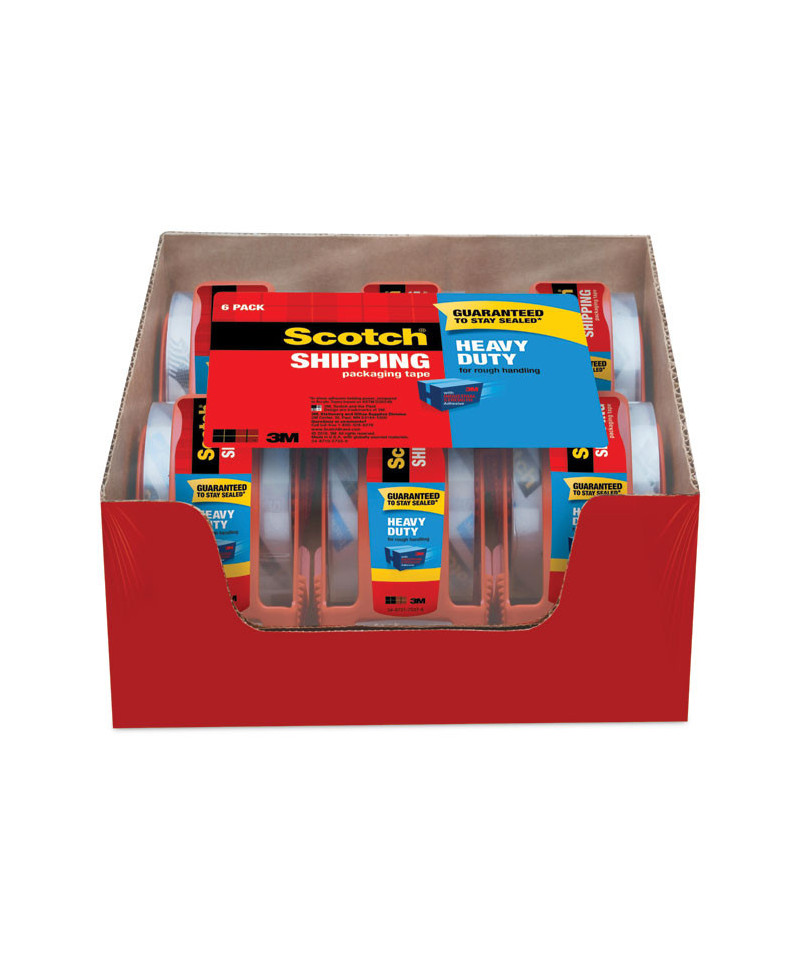 Now even the heaviest packages can withstand rough handling. Our Scotch® Heavy Duty Shipping Packaging Tape holds strong on all box types, including 100% recycled boxes. It's even guaranteed to stay sealed. The strong, tough, solvent-free hot melt adhesive locks in your heavy duty contents and locks out everything else. You don't need layers of tape to get the job donejust one strip at a timeso you save time. Your heavy packages can bear the weight and stay sealed through it all with Scotch® Heavy Duty packaging tape.