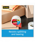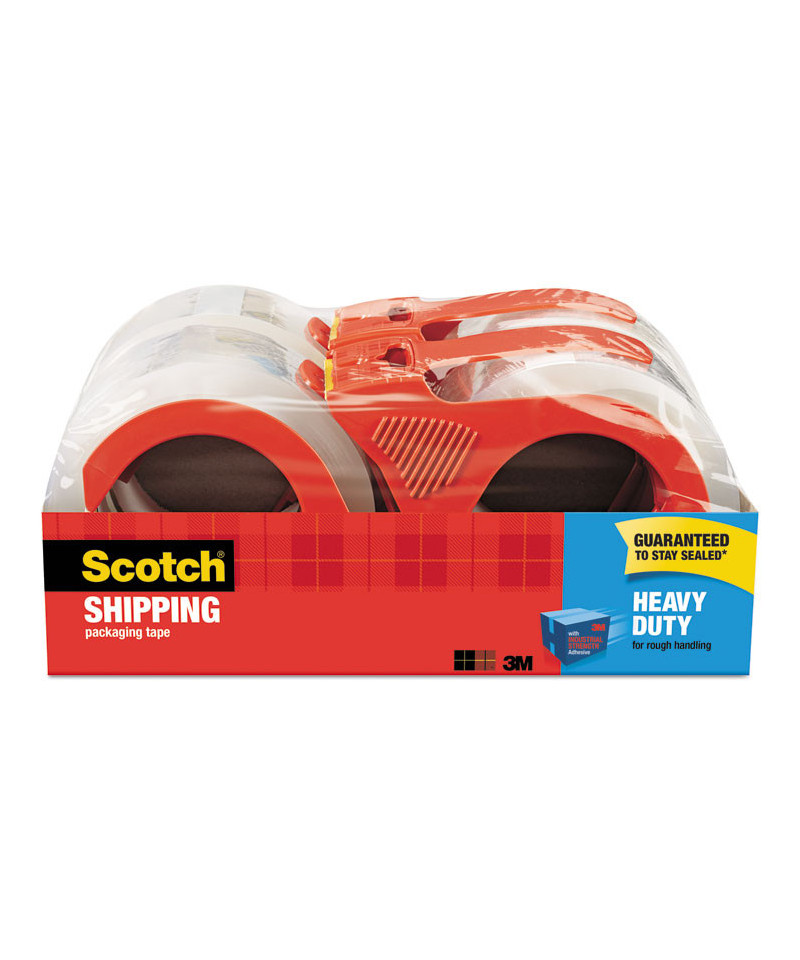 Now even the heaviest packages can withstand rough handling. Our Scotch® Heavy Duty Shipping Packaging Tape holds strong on all box types, including 100% recycled boxes. It's even guaranteed to stay sealed. The strong, tough, solvent-free hot melt adhesive locks in your heavy duty contents and locks out everything else. You don't need layers of tape to get the job donejust one strip at a timeso you save time. Your heavy packages can bear the weight and stay sealed through it all with Scotch® Heavy Duty packaging tape.