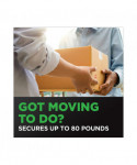 Secures up to 80 lbs of weight per box. Stays sealed during rough handling and rough rides in a moving truck. Durable hot melt adhesive stays on, stays strong for tough jobs. Tough grip on all box types, including hard-to-stick boxes made with 100% recycled fibers.