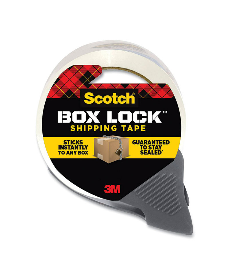 Scotch Box Lock™ Packaging Tape sticks instantly to any box! It has the power of extreme grip to ensure boxes stay securely sealed, even during rough handling. Its new advanced adhesive creates a secure seal over box edges, and its thickness and durability reduces splitting and tearing and makes it easier to find the start of the roll. This tape can be used to seal any type of box, including harder-to-stick to 100% recycled boxes.