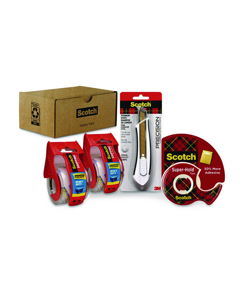 Whether you're shipping with boxes, or mailing with envelopes, this shipping variety pack has what you need to tackle it all. No matter the task, our tapes deliver on adhesive strength so you can feel confident in having a secure seal that will withstand the jostles of transit. To deliver an extra wink to your recipient, customize your packages by labeling with Super-Hold Tape. Opening will be a breeze with the precision of the Scotch Utility Knife. No loose flaps here, just strong adhesive that will keep it all together. Choose Scotch Brand and start 'sending' with confidence.