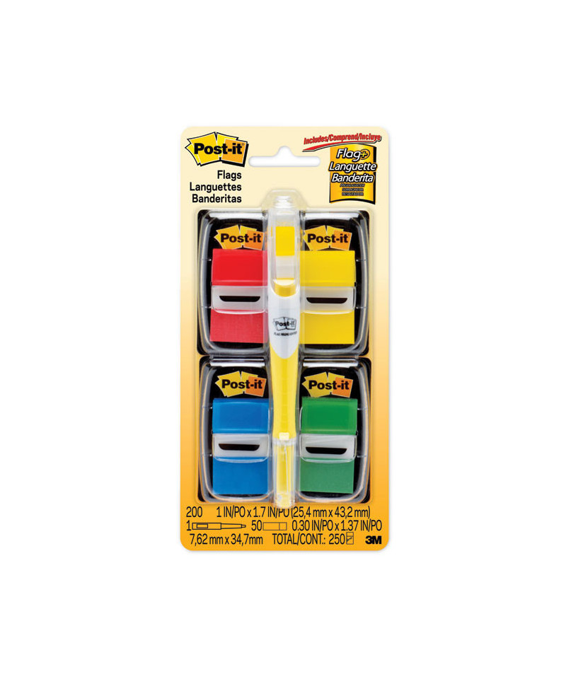 Post-it® flags in assorted colors and sizes help you mark pages, point out important details and draw attention to action items. Regardless of size or color, they always stay where you place them, but you can reposition them if you need to. All varieties come in convenient dispensers that easily fit inside your bag, briefcase or satchel, allowing you to keep your favorite flags handy, wherever you go.