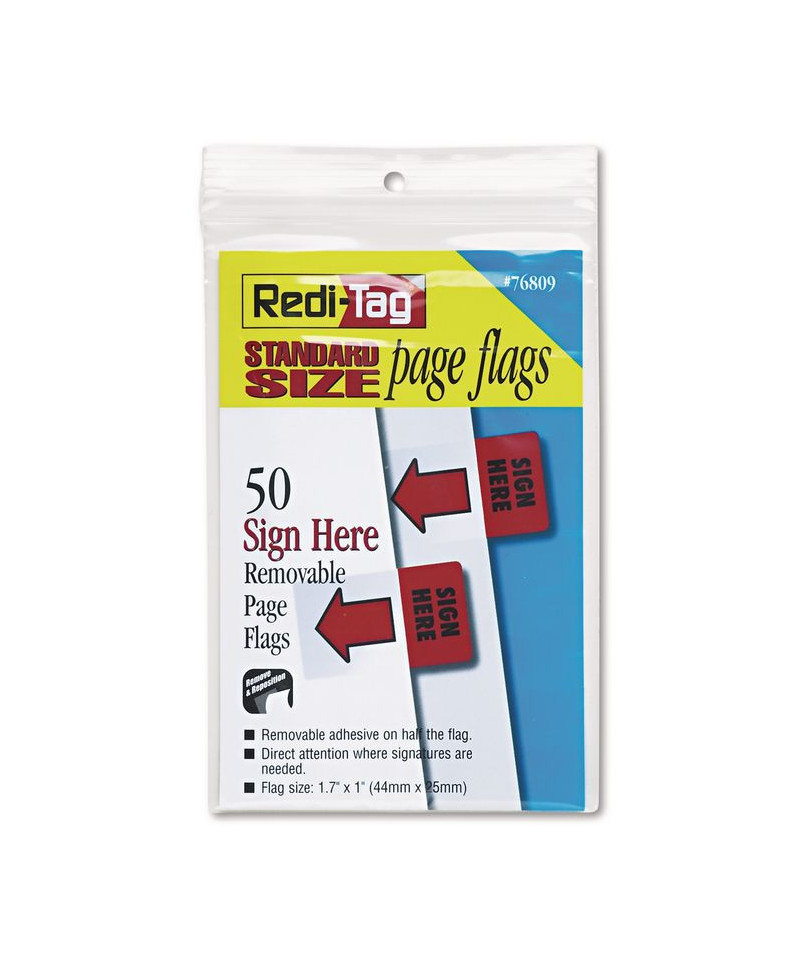 Removable/Reusable Page Flags, "Sign Here", Red, 50/Pack