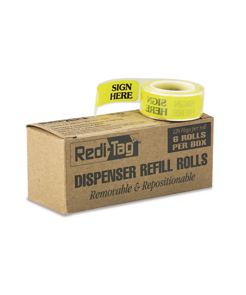 Arrow Message Page Flag Refills, "Sign Here", Yellow, 120 Flags/Roll, 6 Rolls/Box