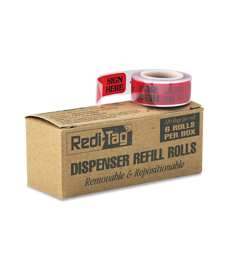 Arrow Message Page Flag Refills, "Sign Here", Red, 120 Flags/Roll, 6 Rolls