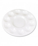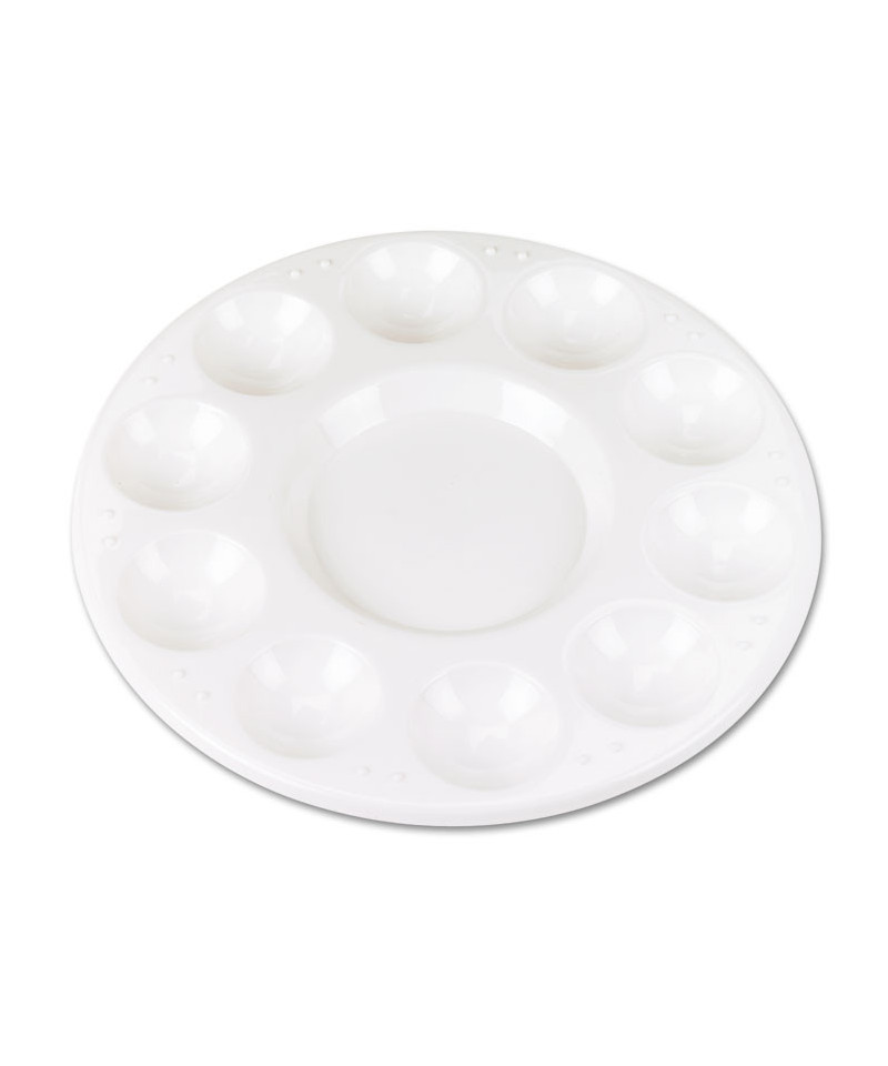 Ideal for distributing paint. Durable white plastic round trays with ten paint wells.