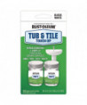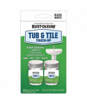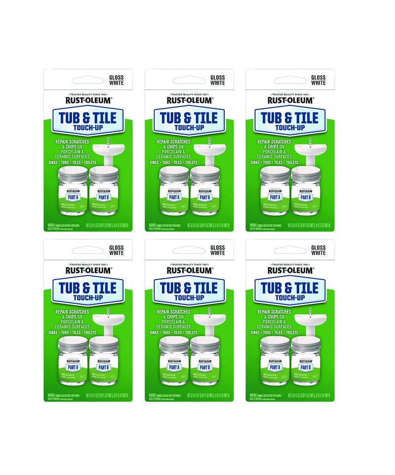 Rust-Oleum Tub and Tile Touch-Up repairs chips, scratches, dents and defects on porcelain, ceramic, fiberglass, acrylic cast iron and steel surfaces that are subject to water exposure. It is a washable, moisture- resistant finish that is suitable for use on tubs, tiles, sinks and toilets. This durable two-component epoxy acrylic provides a high gloss finish to make such surfaces look newer. Do not use on surfaces exposed to temperatures over 200° F such as stove tops, areas of constant high humidity and water immersion such as swimming pools, hot tubs, saunas or for use on galvanized steel or flexible plastic.