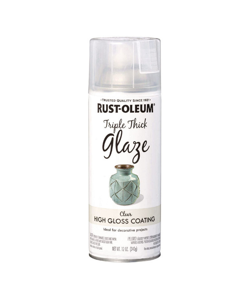 Rust-Oleum Specialty Triple Thick Glaze is a clear protective coating that gives a glass-like crystal clear finish. It provides a protective, non-yellowing top coat that applies thicker than other clear coatings. Great for wood, metal, wicker, plastic, glass, plaster, ceramic and paper. Can be used on interior and exterior surfaces.