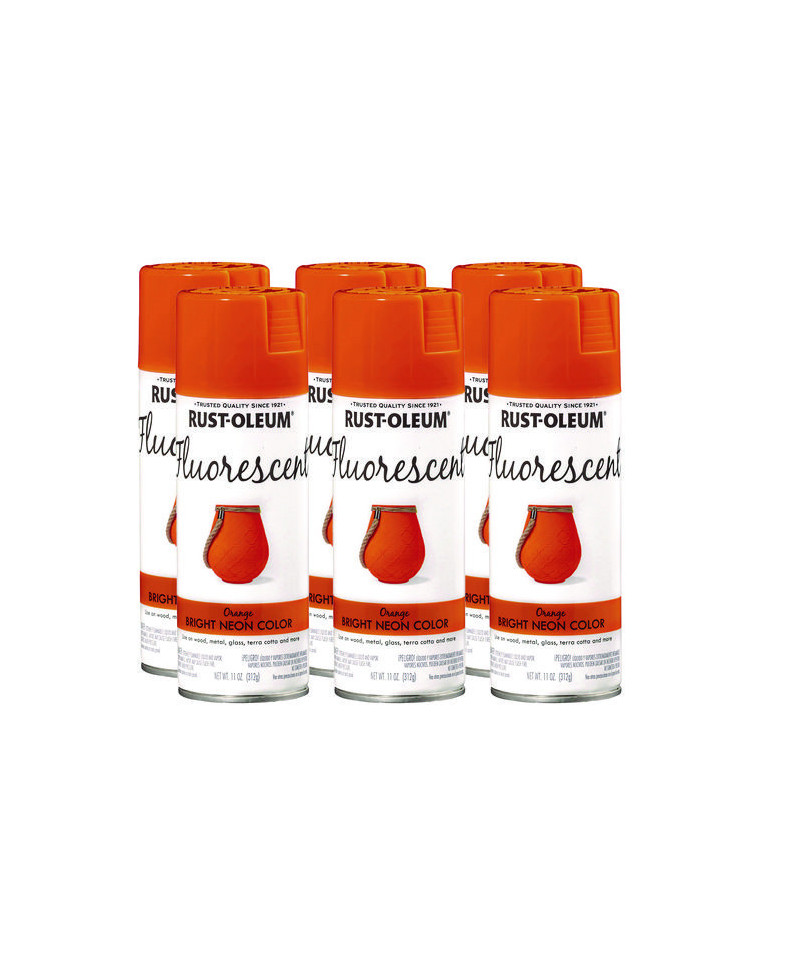 Rust-Oleum Fluorescent provides bright, highly visible color on a variety of surfaces. It is ideal for interior and exterior projects and also glows under a black light. For best results, apply over a white base-coat. It dries in as little as 15 minutes. Clean up with mineral spirits.