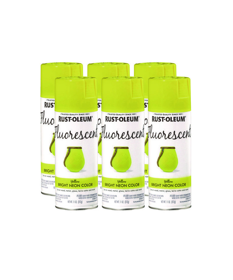 Rust-Oleum Fluorescent provides bright, highly visible color on a variety of surfaces. It is ideal for interior and exterior projects and also glows under a black light. For best results, apply over a white base-coat. It dries in as little as 15 minutes. Clean up with mineral spirits.