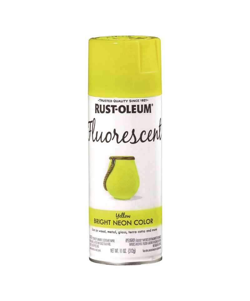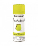 Rust-Oleum Fluorescent provides bright, highly visible color on a variety of surfaces. It is ideal for interior and exterior projects and also glows under a black light. For best results, apply over a white base-coat. It dries in as little as 15 minutes. Clean up with mineral spirits.