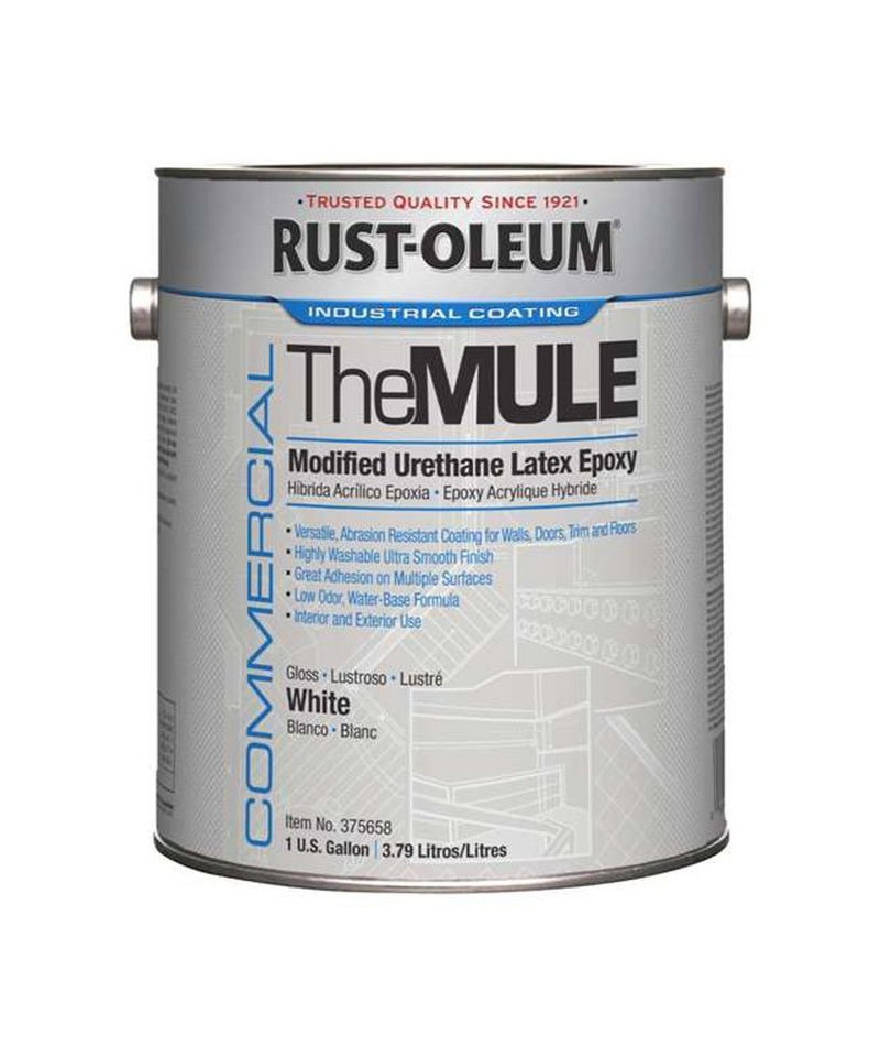 The MULE is an easy to use, abrasion-resistant commercial coating designed specifically for high traffic areas that are subject to routine cleaning and disinfection: schools, healthcare facilities, offices, hospitality environments and more. Verstile Modified Urethane Latex Epoxy (MULE) features excellent adhesion qualities, allowing it to be applied on a wide range of both primed and previously painted materials, indoor and out. Use it on walls, doors, moldings, railings and even floors. Low-odor, water-based formula.