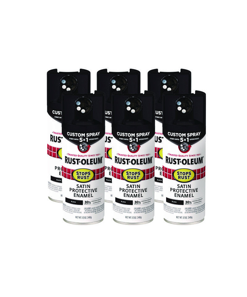 Stops Rust 5-in-1 Spray Paint, Satin Black, 12 oz Aerosol Can, 6/Carton