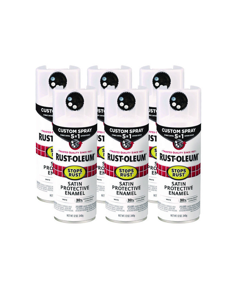 Stops Rust 5-in-1 Spray Paint, Satin White, 12 oz Aerosol Can, 6/Carton
