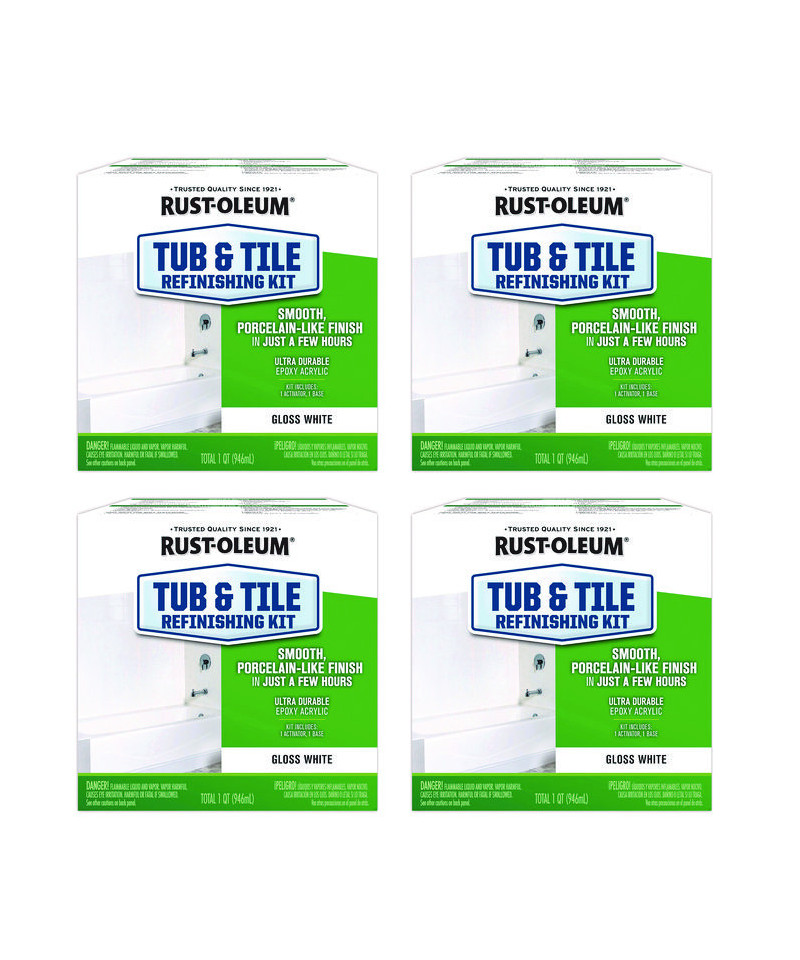 Rust-Oleum Tub & Tile Refinishing Kit is a two-part epoxy acrylic designed to provide excellent adhesion, durability and color retention in high moisture areas. It is ideal for use to renew ceramic tile and porcelain, fiberglass, acrylic, cast iron and steel tubs and sinks. It is not for use on galvanized steel or flexible plastic. Do not use on areas exposed to extreme heat such as stovetops, or constant high humidity environments. Do not use in continuous water immersion such as swimming pools, hot tubs, ponds or saunas.