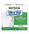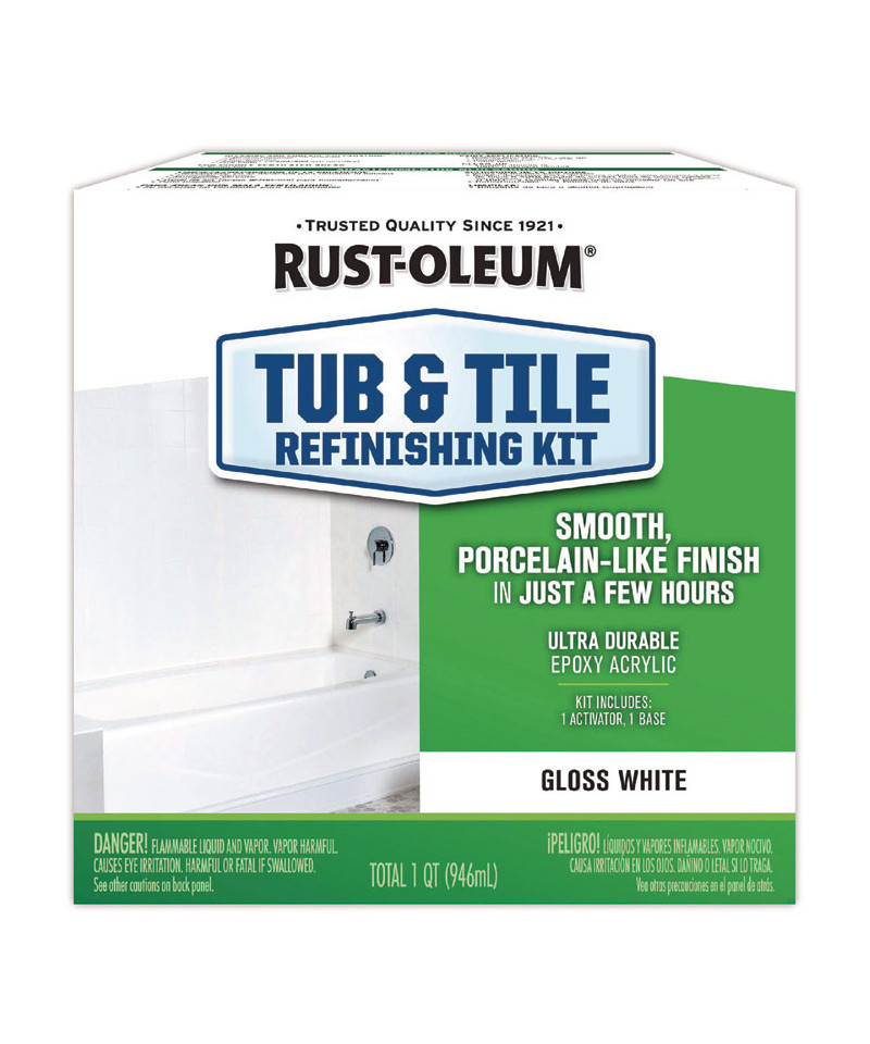 Rust-Oleum Tub & Tile Refinishing Kit is a two-part epoxy acrylic designed to provide excellent adhesion, durability and color retention in high moisture areas. It is ideal for use to renew ceramic tile and porcelain, fiberglass, acrylic, cast iron and steel tubs and sinks. It is not for use on galvanized steel or flexible plastic. Do not use on areas exposed to extreme heat such as stovetops, or constant high humidity environments. Do not use in continuous water immersion such as swimming pools, hot tubs, ponds or saunas.