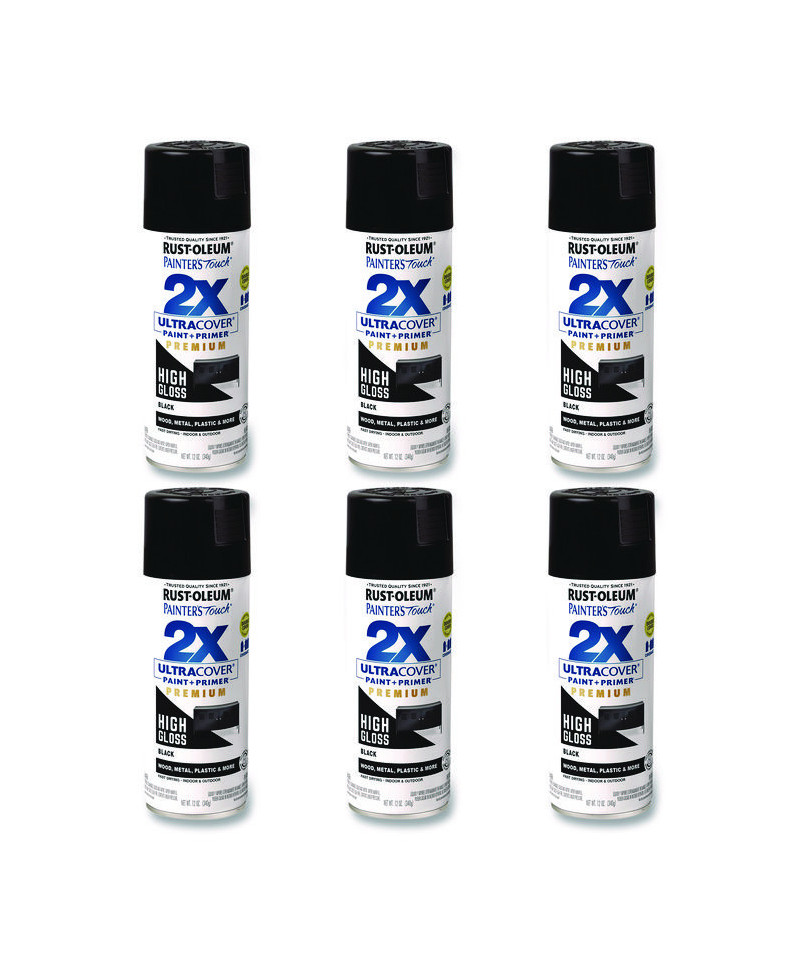 Painter's Touch 2X Ultra Cover Spray Paint, High Gloss Black, 12 oz Aerosol Can, 6/Carton