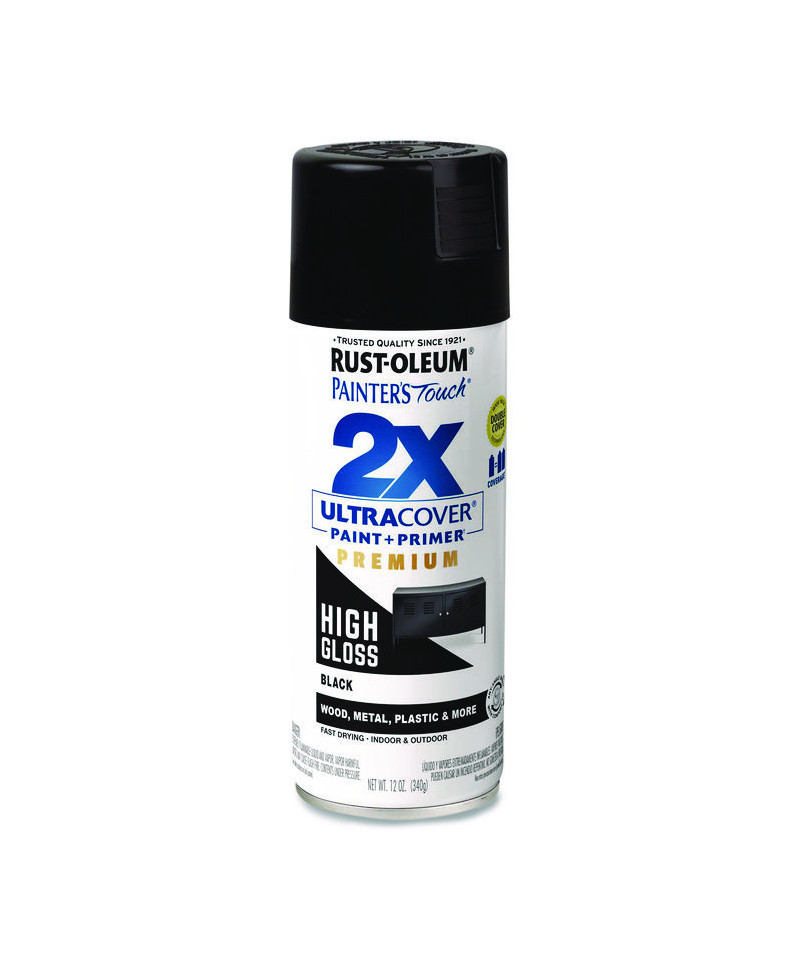 Painter's Touch 2X Ultra Cover Spray Paint, High Gloss Black, 12 oz Aerosol Can