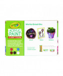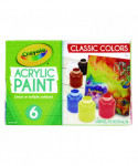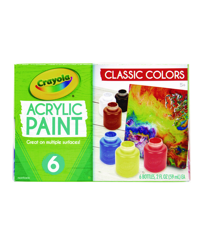 Perfect for arts and crafts at school and at home, Crayola® Acrylic Paint Sets offer pigment-rich colors that are water-resistant and permanent when dry. Thick and rich, this vibrant paint makes possible a wide variety of techniques on surfaces such as canvas, wood, metal, fabrics and ceramics. Though permanent when dry, while wet, the paint cleans up with soap and water. If spilled, be sure to clean-up immediately, before the paint dries. Safe and nontoxic.