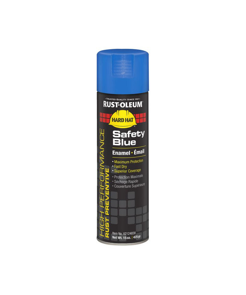 Hard Hat High Performance V2100 System Rust Preventive Enamel Spray Paint, Gloss Safety Blue, 15 oz Aerosol Can, 6/Carton
