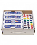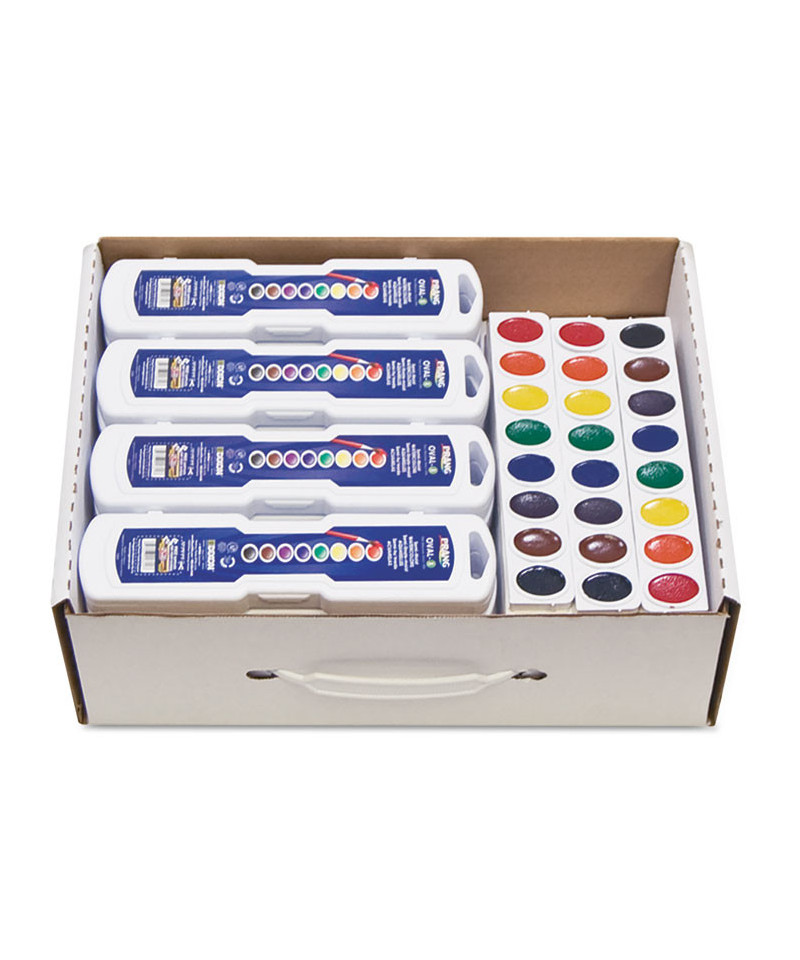 Semi-moist transparent watercolor paints contain no wax. Brilliant pigments mix cleanly, flow easily, and stay true. Paint never dries out. White, segmented lid for true color mixing.