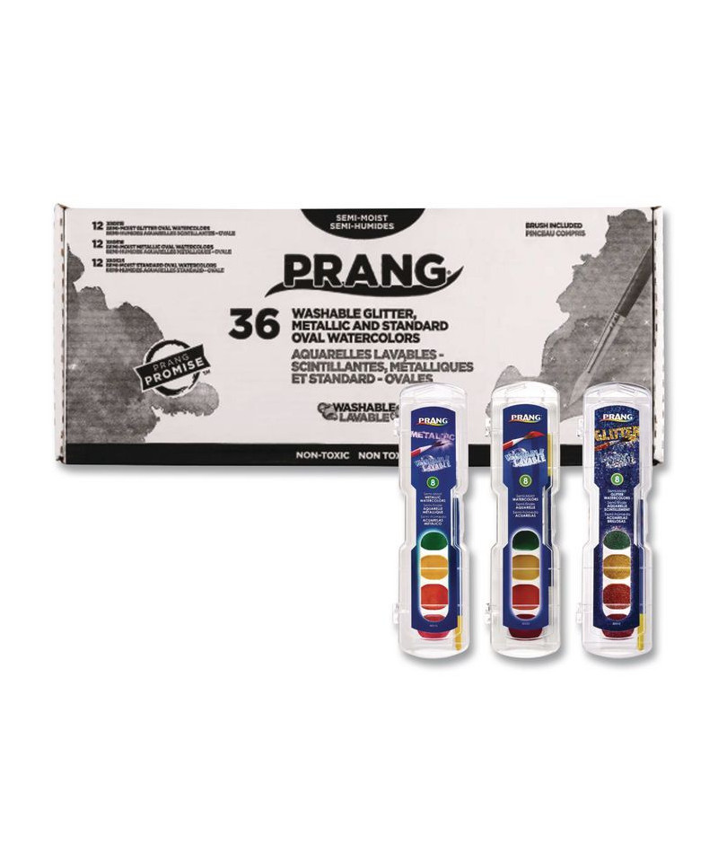 Add to cart Glitter Washable Watercolors, 8 Assorted Colors $3.19 Festive, shimmering watercolors that kids love! Same semi-moist formula as Prang watercolors. Washable formula easily comes off hands and nearly...