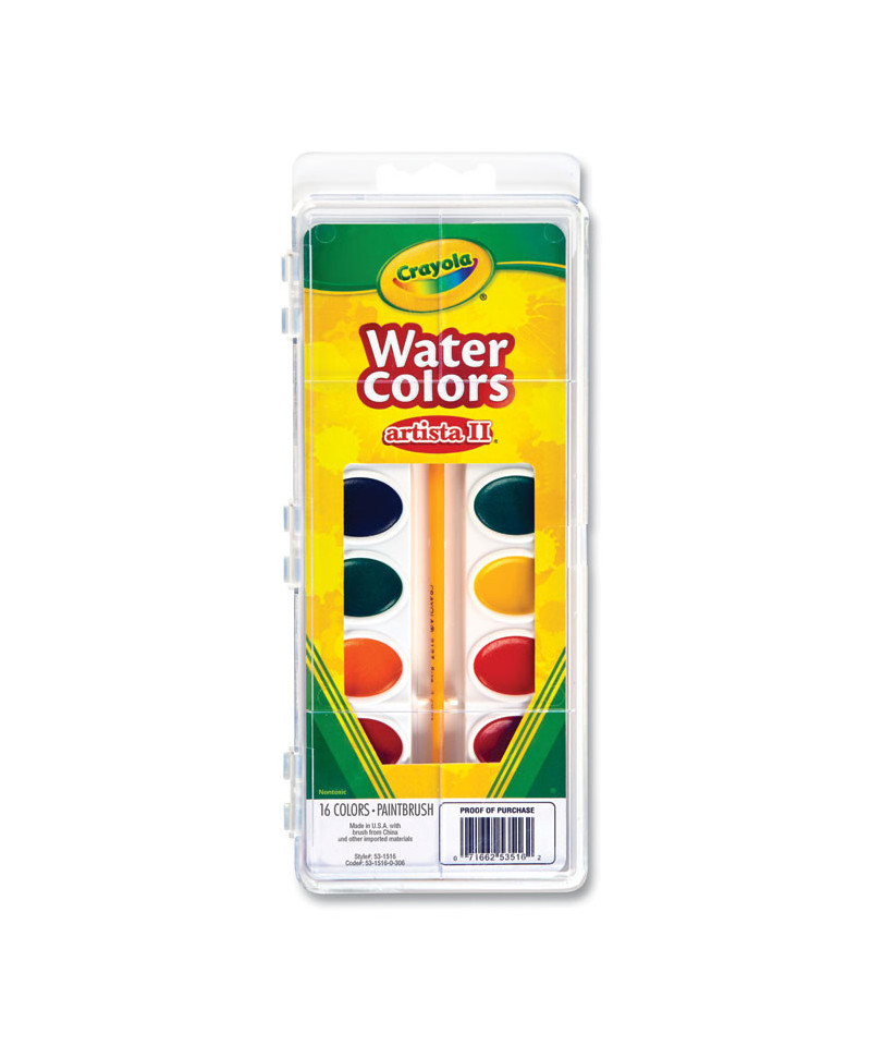 Let your budding artist indulge their creative side with this watercolor paint and brush set. These vibrant paints are nontoxic so they're suitable for use by even the youngest painters. With 16 colors in the paint set, they'll have a rainbow at their fingertips to create a multitude of pictures. Includes a white lid that can be used as a blending and mixing tray. Ideal for ages 3 and up.
