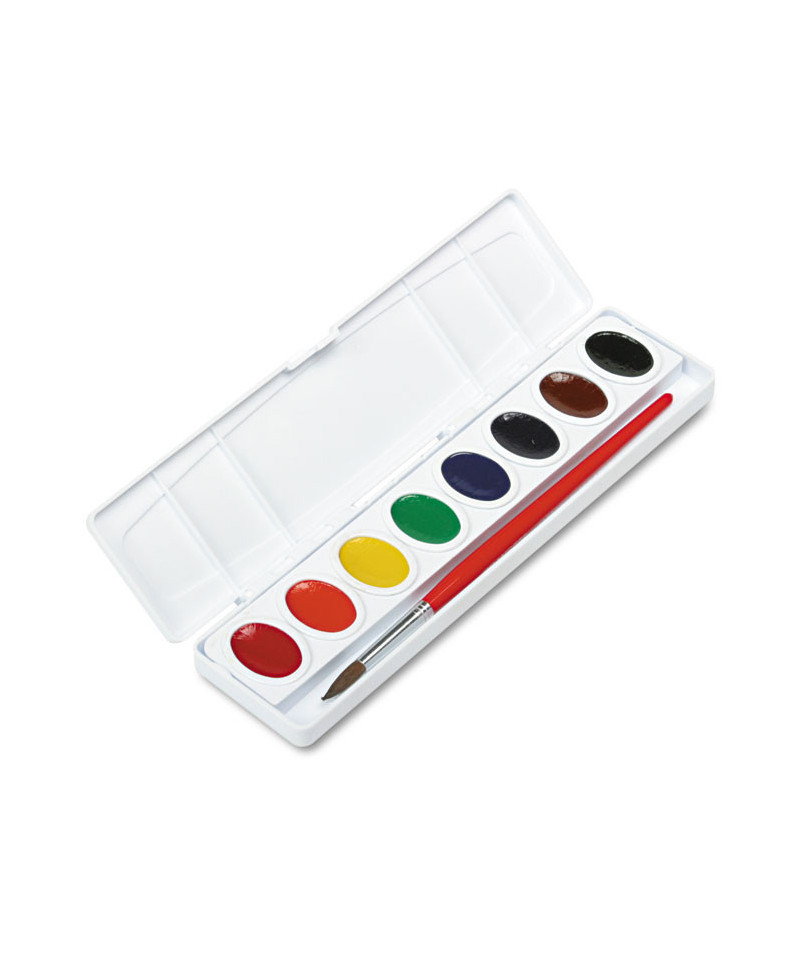 Semi-moist transparent watercolor paints contain no wax. Brilliant pigments mix cleanly, flow easily, and stay true. Paint never dries out. White, segmented lid for true color mixing.