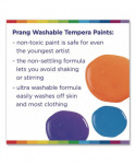 Non-settling brilliant colors require no shaking and have a bright lay down. Perfect for small children, daycare centers or any classroom setting. Kid-pleasing colors wash easily from skin and most surfaces, including clothing! No stirring or shaking, paint is ready-to-use. Dries to satiny finish that won't rub off on hands or clothing.