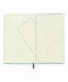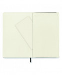 Thread-bound softcover notebook with rounded corners. Expandable inner pocket in cardboard and cloth. Convenient elastic closure and ribbon bookmark. Acid-free paper. Includes front endpaper with "in case of loss" notice.