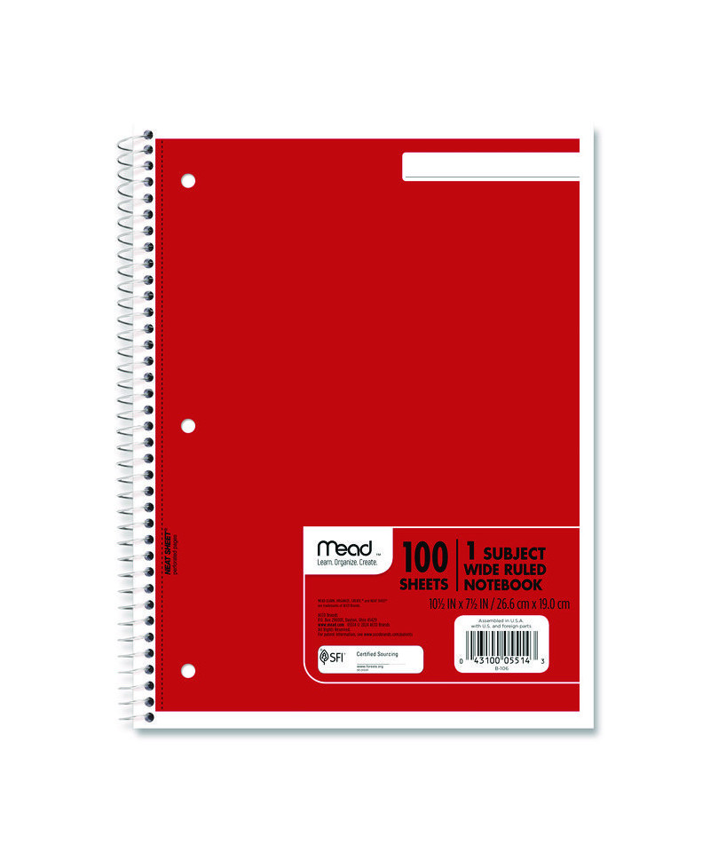 Basic notebook is versatile and perfect for a variety of uses including in-class notetaking and recording meeting notes. Spiral binding for smooth page turning. Double-sided, ruled paper. Durable, coated paper cover. 3-hole punched to store in your favorite binder. Great for color coding by subject. Notebook spiral binding will not snag and resists uncoiling to keep your notes together.