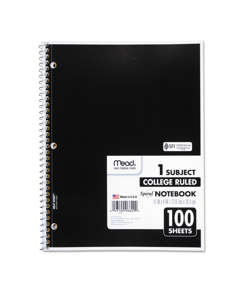 Basic notebook is versatile and perfect for a variety of uses including in-class notetaking and recording meeting notes. Spiral binding for smooth page turning. Double-sided, ruled paper. Durable, coated paper cover. 3-hole punched to store in your favorite binder. Great for color coding by subject. Notebook spiral binding will not snag and resists uncoiling to keep your notes together.