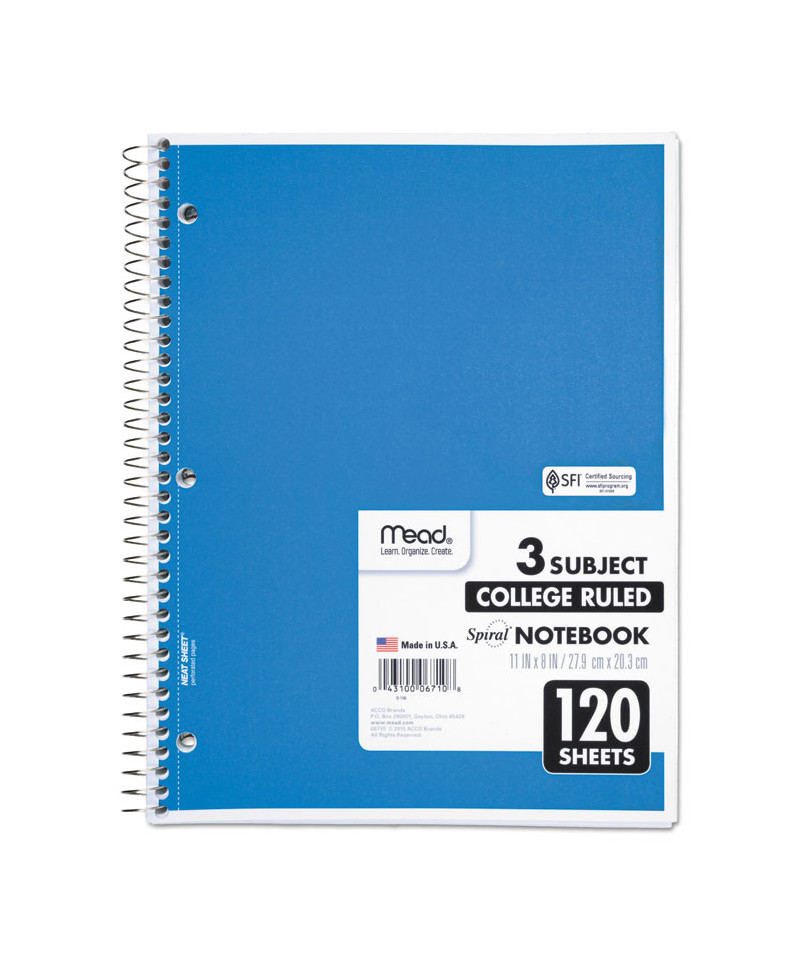 Spiral binding for smooth page turning. Double-sided, ruled paper. Durable, coated paper cover. 3-hole punched to store in your favorite binder. Great for color coding by subject. Notebook spiral binding will not snag and resists uncoiling to keep your notes together.