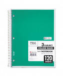 Spiral Notebook, 3-Subject, Medium/College Rule, Randomly Assorted Cover Color, (120) 11 x 8 Sheets