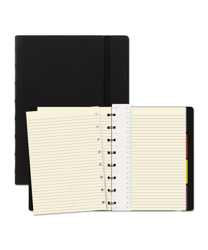 Contemporary soft touch leather-look cover with elastic closure. Twin-wire binding allows book to lay perfectly flat and allows the cover to fold back 360 degrees. Innovative sheet binding allows the premium, cream-colored ruled paper to be repositioned to suit your personal needs.