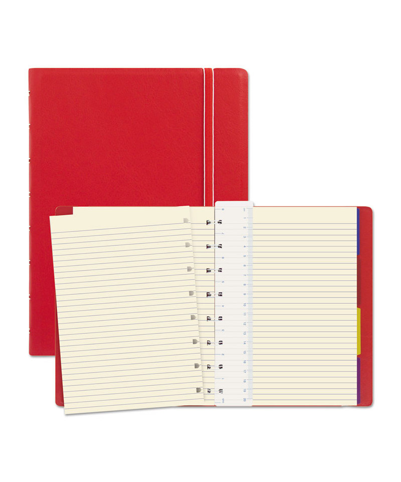 Contemporary soft touch leather-look cover with elastic closure. Twin-wire binding allows book to lay perfectly flat and allows the cover to fold back 360 degrees. Innovative sheet binding allows the premium, cream-colored ruled paper to be repositioned to suit your personal needs.
