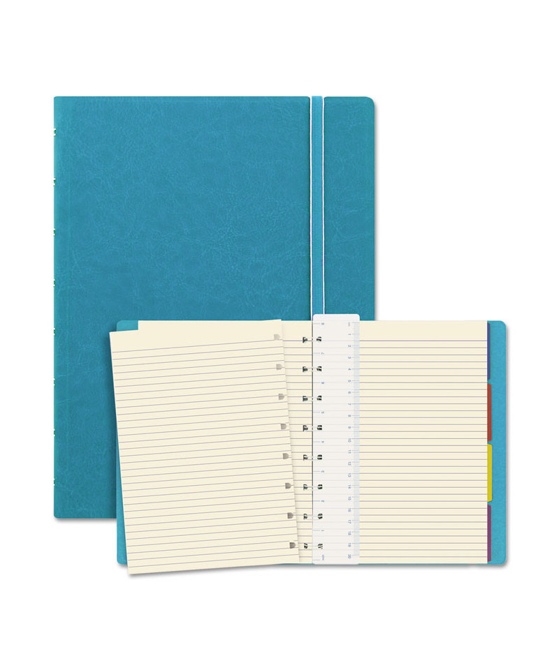 Contemporary soft touch leather-look cover with elastic closure. Twin-wire binding allows book to lay perfectly flat and allows the cover to fold back 360 degrees. Innovative sheet binding allows the premium, cream-colored ruled paper to be repositioned to suit your personal needs.