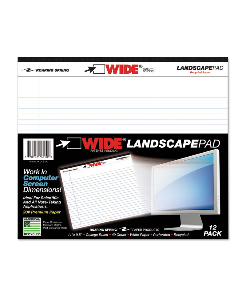 Take notes in style with our notepad collection! Tired of notebooks that cramp your workspace? These innovative notepads are designed in a landscape orientation, making them perfect for desks, desktops, and even airplane trays. Heavyweight recycled paper for a sustainable note-taking experience. The lined sheets run the long direction of the pad for a comfortable writing experience, and a red margin line keeps your notes organized. Each pad comes micro-perforated for easy tear-out at a convenient 11" x 8.5" size. Upgrade your note-taking game with these stylish and sustainable notepad options!