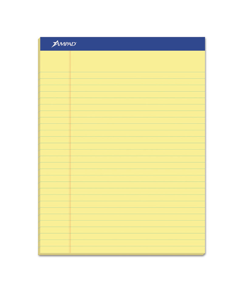 Ampad® Writing Pads offer the ultimate value in reliable everyday legal pads for home or office. The classic format long preferred by attorneys and professionals gives you quick access to notes and lists. A sturdy back provides firm writing support. Micro-perforated sheets detach easily for a tidy, organized notepad.