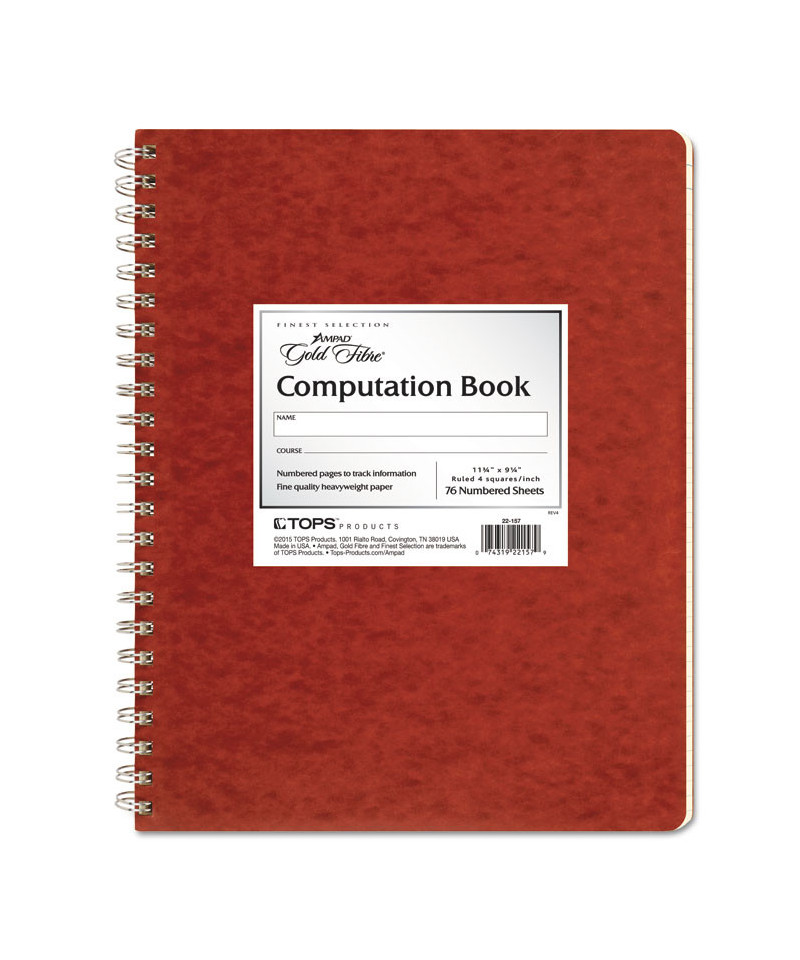 This Ampad® Computation Book offers premium graph-ruled sheets in a durable spiral notebook. Pages have top and side margins on grid-to-edge graph ruling to provide scale and structure for technical drawings. Numbered pages help you navigate notes. Pressboard covers make this format ideal for student or professional use.