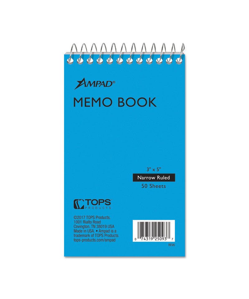 Ampad® Top-Bound Memo Books are the perfect note taking companions. The small format has get-up-and-go for travel by pocket or purse. Colors randomly assigned per order.