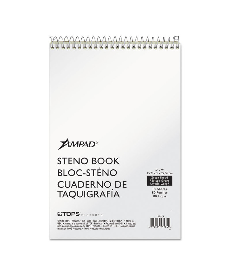 Ampad® Steno Books are ideal for everyday use at home, school or office. The classic flip-top format long preferred by stenographers and reporters gives quick access to notes and lists. A no-snag coil resists catching on papers or clothing. Perforated sheets detach easily.
