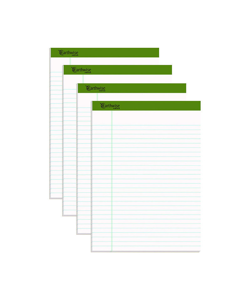 Dual-purpose writing pad and desktop printer paper. Ruled on front, blank on back. Microperforated. Clean, easy sheet removal. No margin for more usable writing space. Paper made from post-consumer recycled fiber.