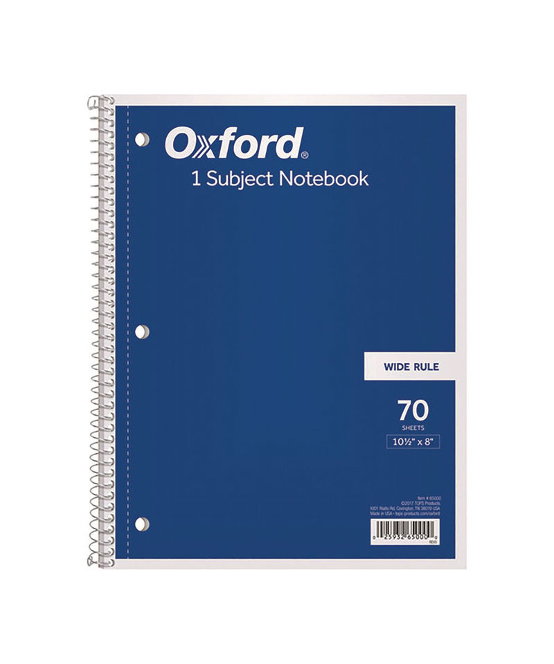 Oxford® notebooks come in fun, bright colors. Perforated sheets detach easily to keep your book neat and tidy. No-snag coil. Colors randomly assigned for each order.
