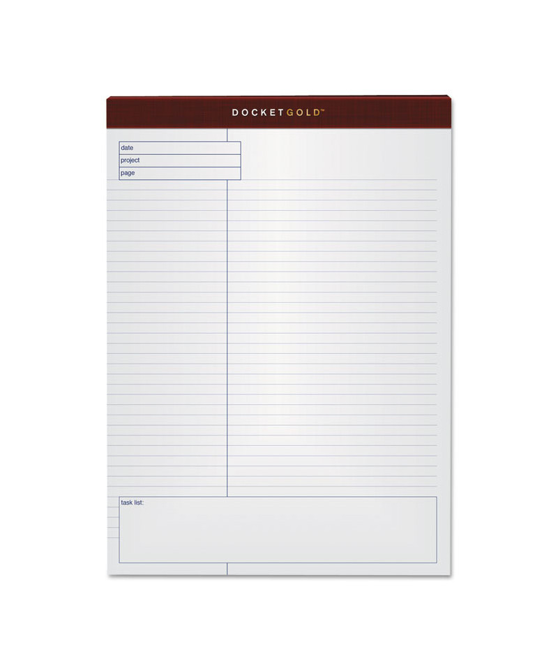 The TOPS™ Docket Gold™ Project Planner has premium paper with a project-ruled front and graph-ruled back to capture your action notes and planning sketches. An extra-strong back provides a sturdy surface for taking notes on the go. Letr-Trim® perforated sheets leave clean edge. Heavyweight paper prevents bleed-through to next sheet. Unique layouts aid planning, design and communication. Supports writing without desktop or clipboard. Top front of each sheet features date and title section; bottom front features task list. Reverse of each sheet is grid-ruled, four squares per inch.
