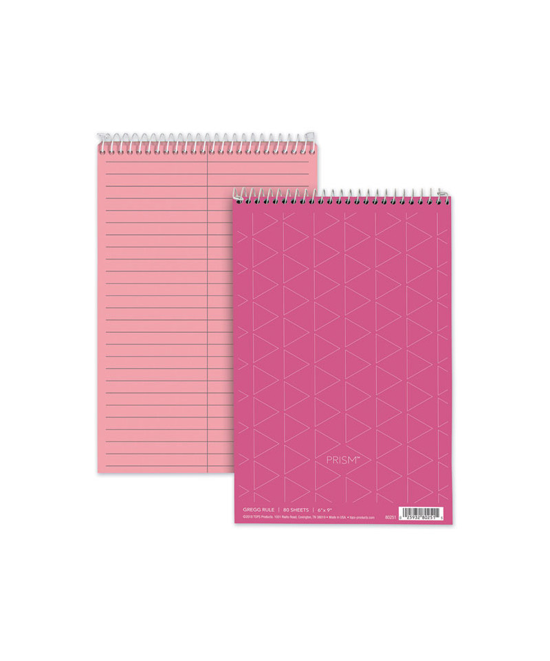 TOPS Prism Steno Books come in soft colors to brighten up your writing routine. The classic flip-top format gives quick access to notes and lists. A sturdy back provides firm writing support. No-snag coil. Perforated sheets.