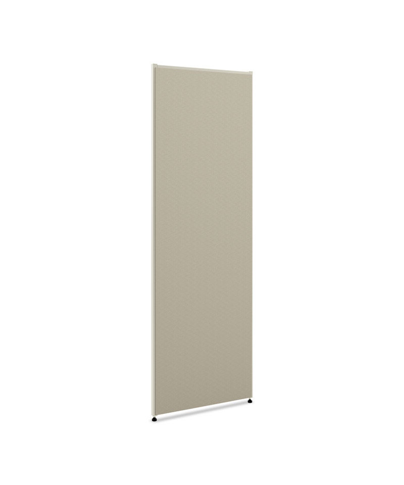 Panels can be freestanding with optional T-Base Foot (sold separately), or can be connected together to create walls, hallways and enclosed offices. Semi-tackable, gray fabric with matching powder coated steel frame. Adjustable glides with all panels.