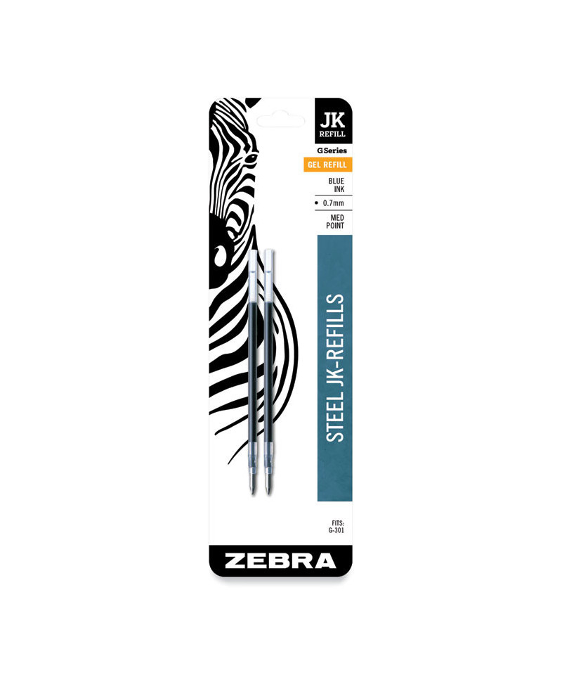 Refill for Zebra JK G-301 Gel Rollerball Pens, Medium Conical Tip, Blue Ink, 2/Pack
