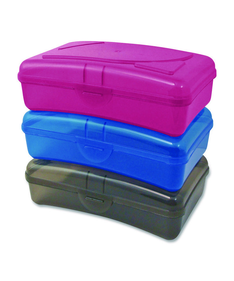 Plastic School Box, 1 Compartment, 8 x 5.13 x 2.13, Randomly Assorted Colors