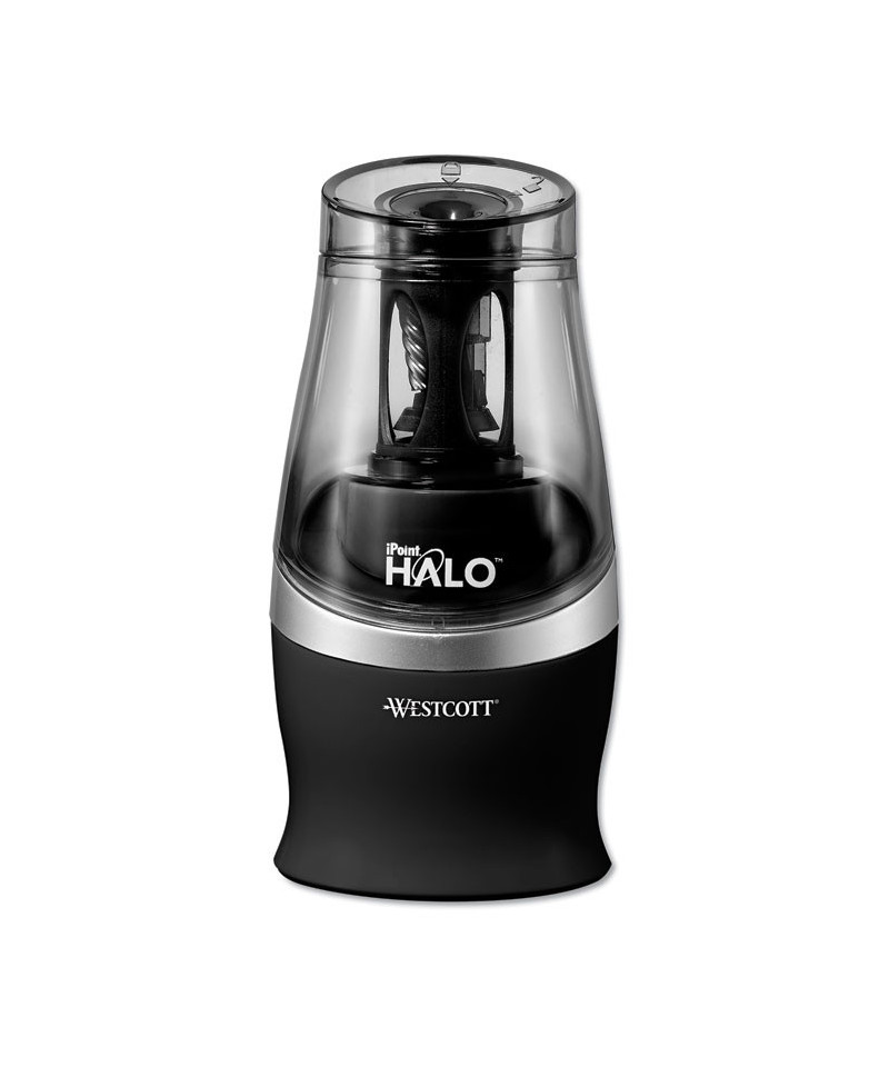 The iPoint Halo quickly sharpens colored pencils. Non-stick titanium bonded blades resist the buildup from wax, graphite, and colored pencils. Auto-sensor turns the power off when the pencil reaches a perfect point. Auto shut-off prevents over-sharpening and delivers a perfect point. EZ-View reservoir allows user to see when it needs to be emptied.